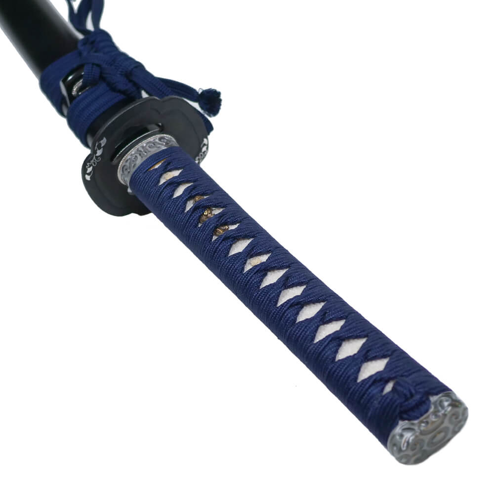 Tout comme la lame, toutes les pièces de fixation sont fabriquées à la main au Japon et donnent un produit 100% fabriqué au Japon.Veuillez noter que l'ancien tissage (Kakucho) de la Sageo a été remplacé par un nouveau tissage (Shigeuchi), donnant à la sageo un aspect plus épais.